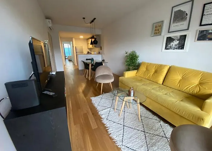 Esta propiedad cuenta con una terraza y una zona de estar equipada con sofá, y comodidades adicionales como climatizador, ofreciendo el máximo confort. Con el fin de mejorar la calidad del entretenimiento de los huéspedes, la propiedad proporciona TV de pantalla plana con canales vía satélite. El apartamento incluye 1 dormitorio. La propiedad dispone de 1 cuarto de baño con bidé, un inodoro separado de la ducha y bañera, así como secadores de pelo y toallas.